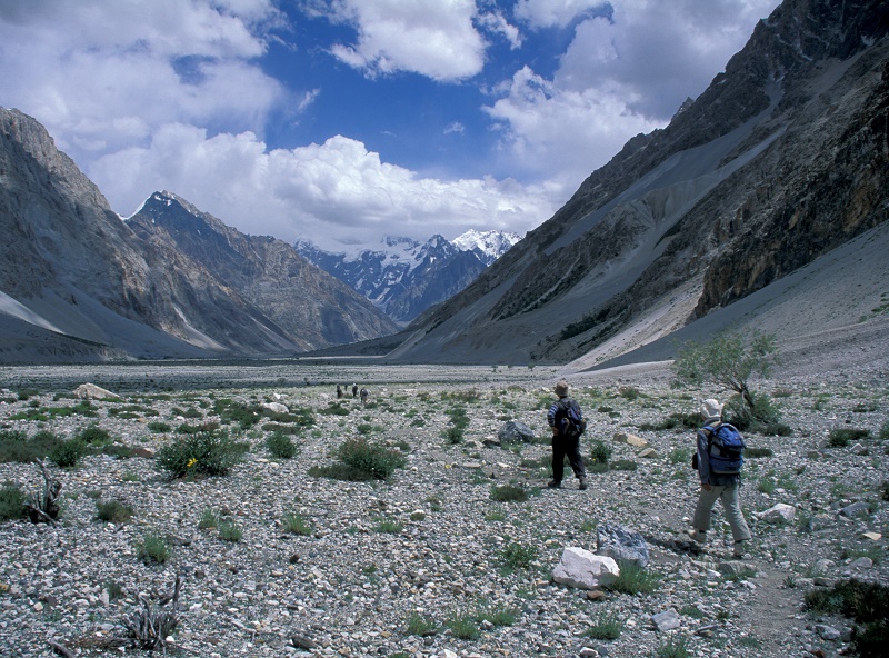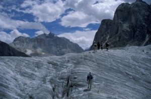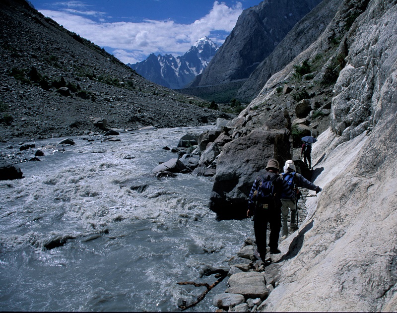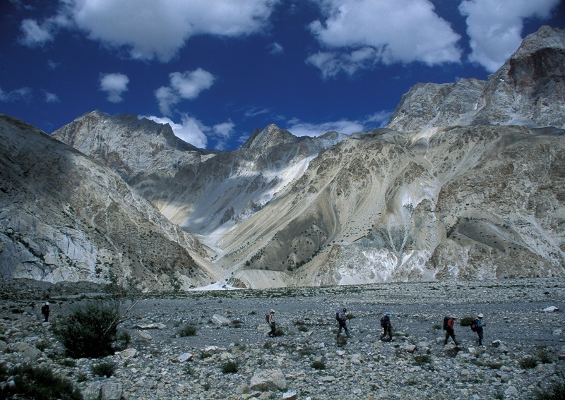 TREK99③ ダルコット河を下る 広い河原を行く (270-4) 氷河の押出を越える (268-6) 灌木の茂る河原 (270-9) 河の縁を (271-17) 黒い氷河を越える (274-10) 荷はロバの背にのせて (ヤクは3000mより下では生きていけない) (270-16) つづく 戻る