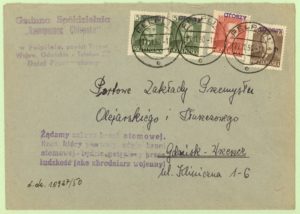 1950年11月27日 Pelplin 局引受 Gdansk 宛 域外基本書状 60 gr 貼