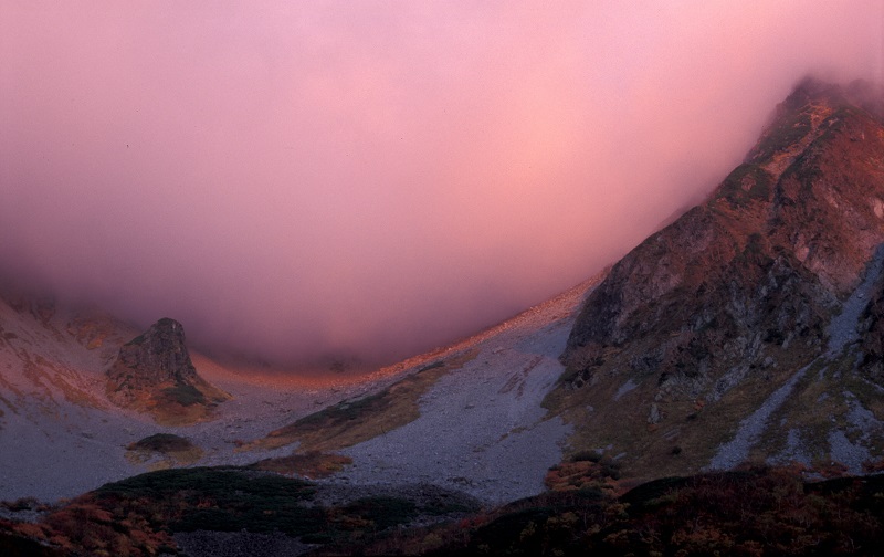谷あいに射し込む午後の光 色づき始めた葉が最期の輝き 眠りの季節